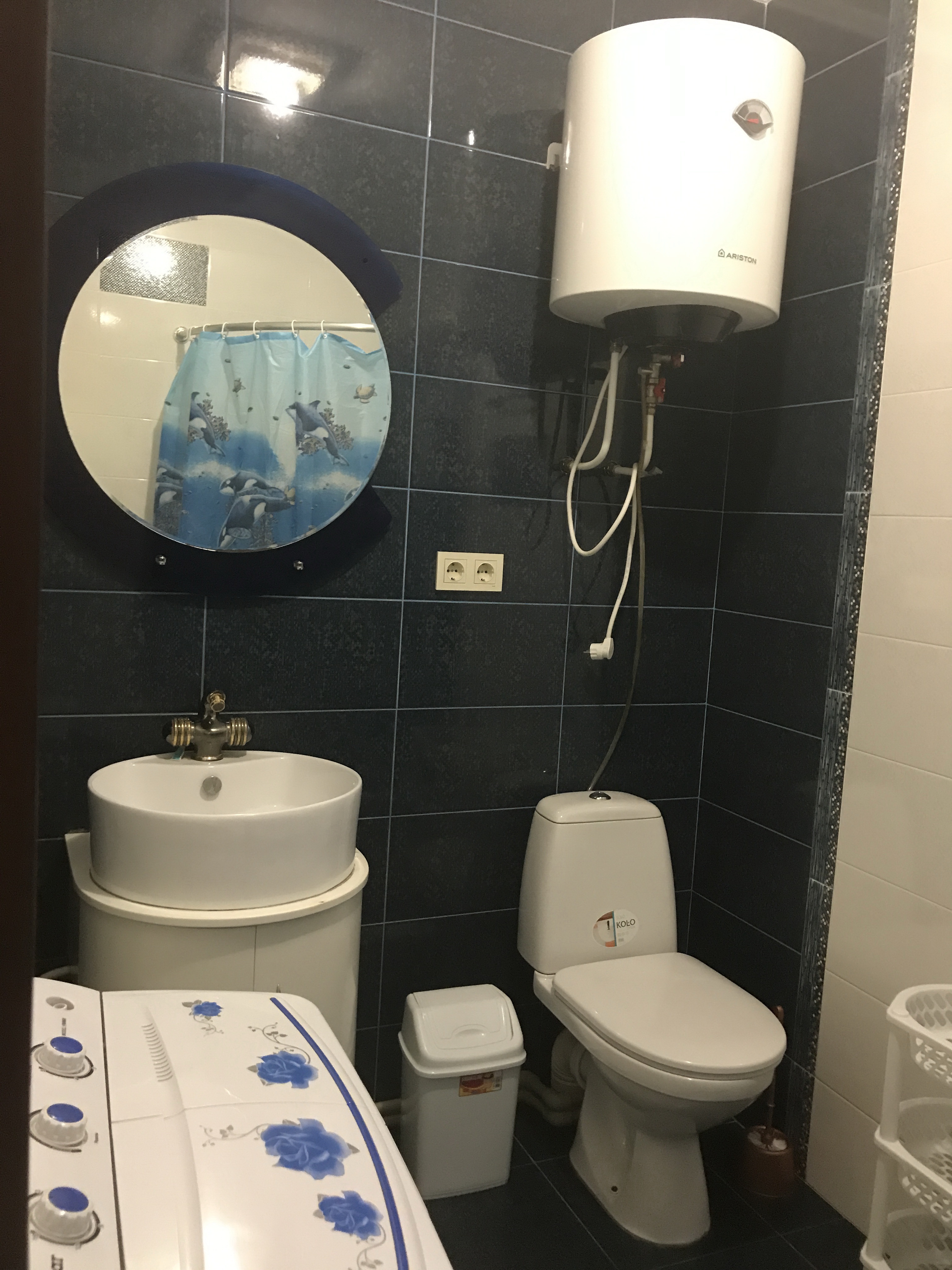 В ванной комнате: душевая кабина, бойлер, стиральная машинка автомат.