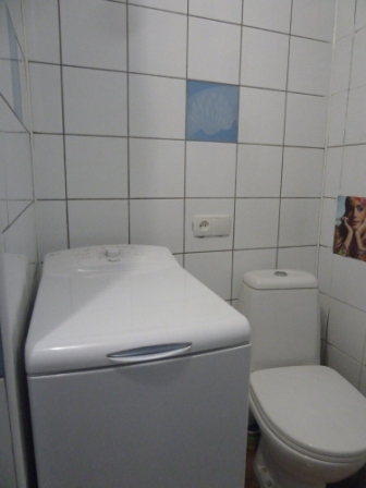 В ванной комнате, ванная, бойлер, стиральная машинка автомат.