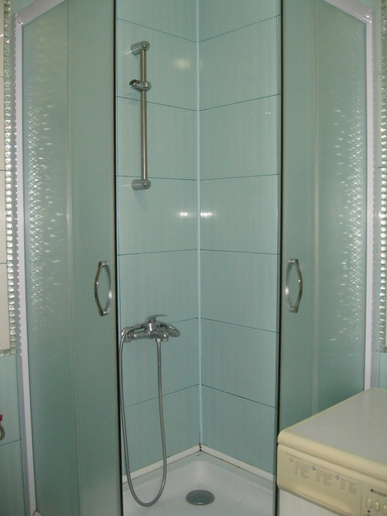 В ванной комнате: душевая кабина, бойлер, стиральная машинка автомат.