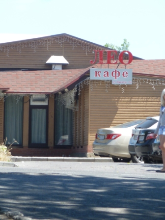 через дорогу очень хорошее кафе "Лео", детская площадка для детей и стоянка.