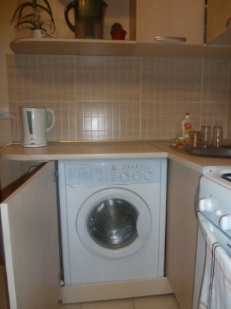 В кухне газовая плита, духовка, и домашняя утварь: чайник,