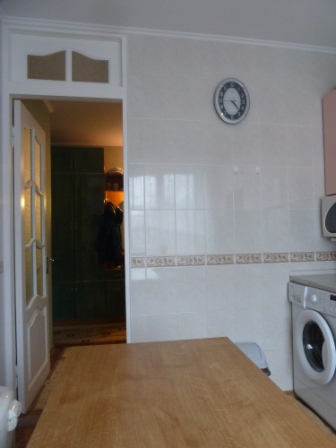 На кухне вся необходимая техника: газовая плита, духовка, микроволновая печь, чайник,