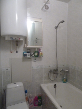 Ванная комната оборудована ванной, бойлером.