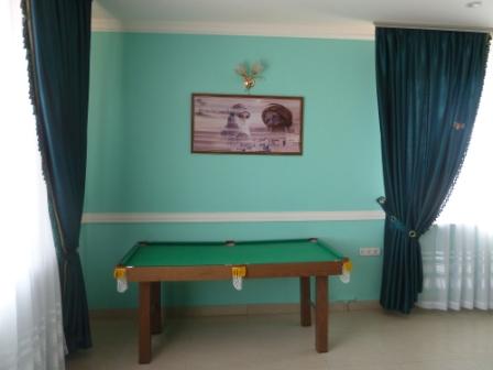 Есть уютный бар, каминный зал (столовая), и бильярд.