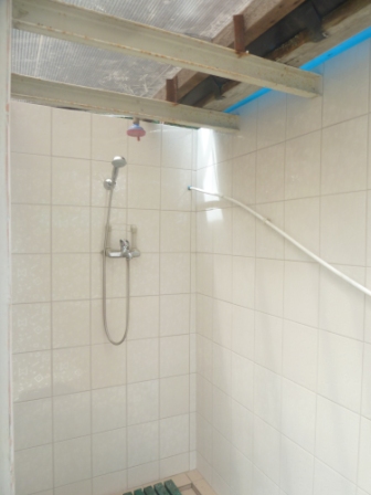 Общий душ. Есть летний и есть с подогревом. Горячая вода есть постоянно.