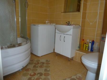 В ванной душевая кабина, стиральная машина автомат.