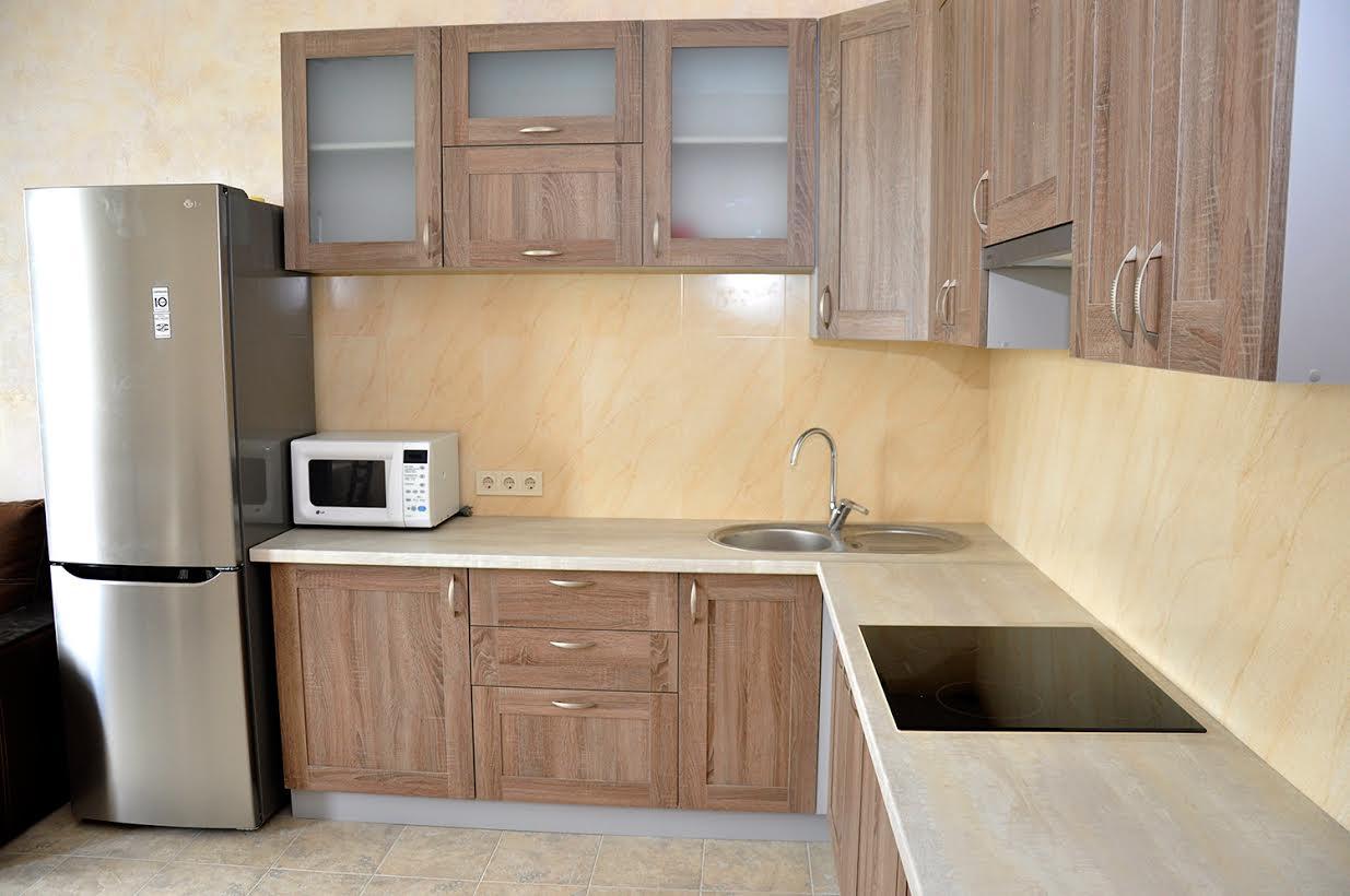 Квартира полностью укомплектована новой мебелью и бытовой техникой: кондиционер, плазменные телевизоры (IP-TV), микроволновая печь, чайник, электроплита, холодильник, стиральная машина, пылесос, бойлер, фен, утюг, гладильная доска, сушилка для белья, постельные принадлежности, полотенца, необходимая посуда (кастрюли, сковородки, тарелки, стаканы, вилки, ложки и т.д.). В коридоре большой зеркальный встроенный шкаф.