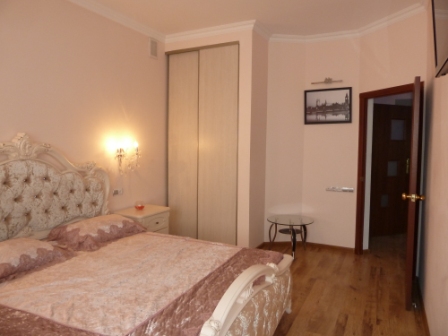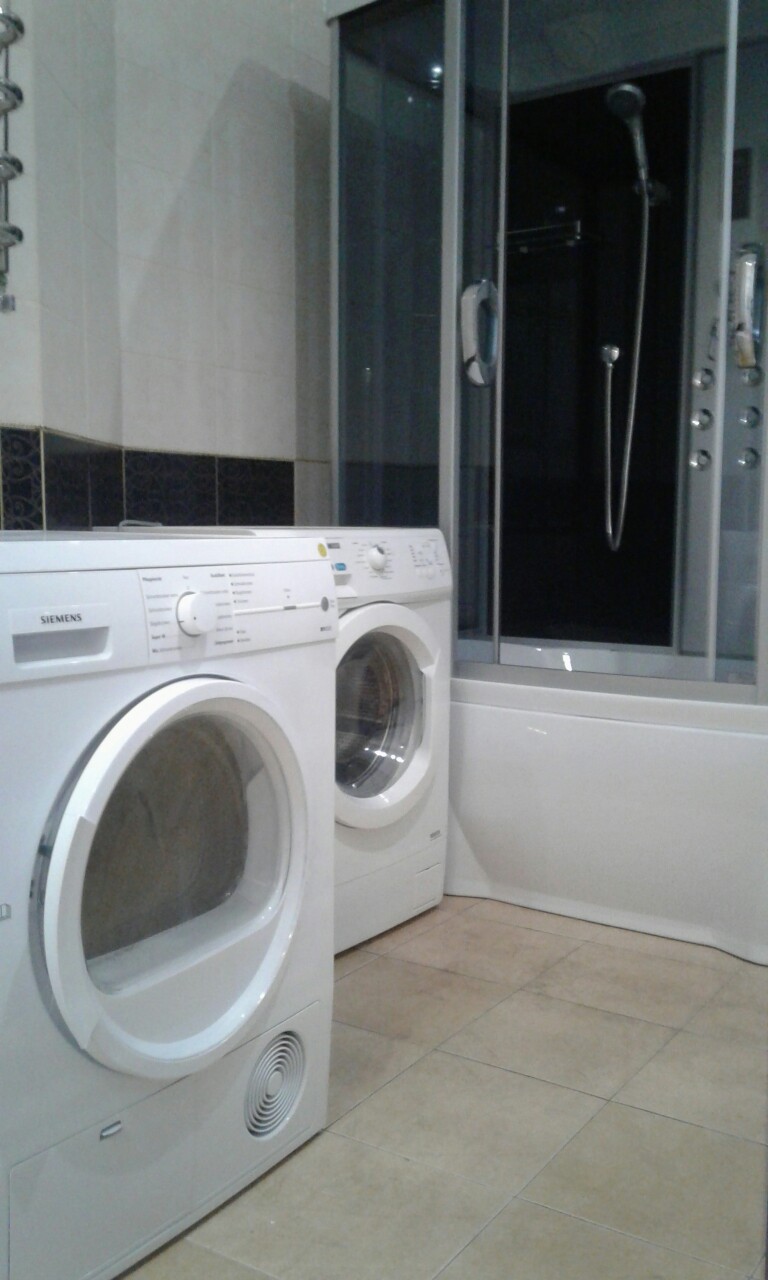 В квартире евро ремонт, полностью укомплектована новой мебелью, два плазменных телевизора, кабельное TV. Утюг и доска для глажки, сушильная машина автомат, есть и простая сушка дополнительно для сушки белья. Вся необходимая техника: два кондиционера зима-лето, стиральная машина автомат, бойлер, микроволновая печь, чайник, электроплита, вытяжка, холодильник. В ванной комнате душевая кабина.
