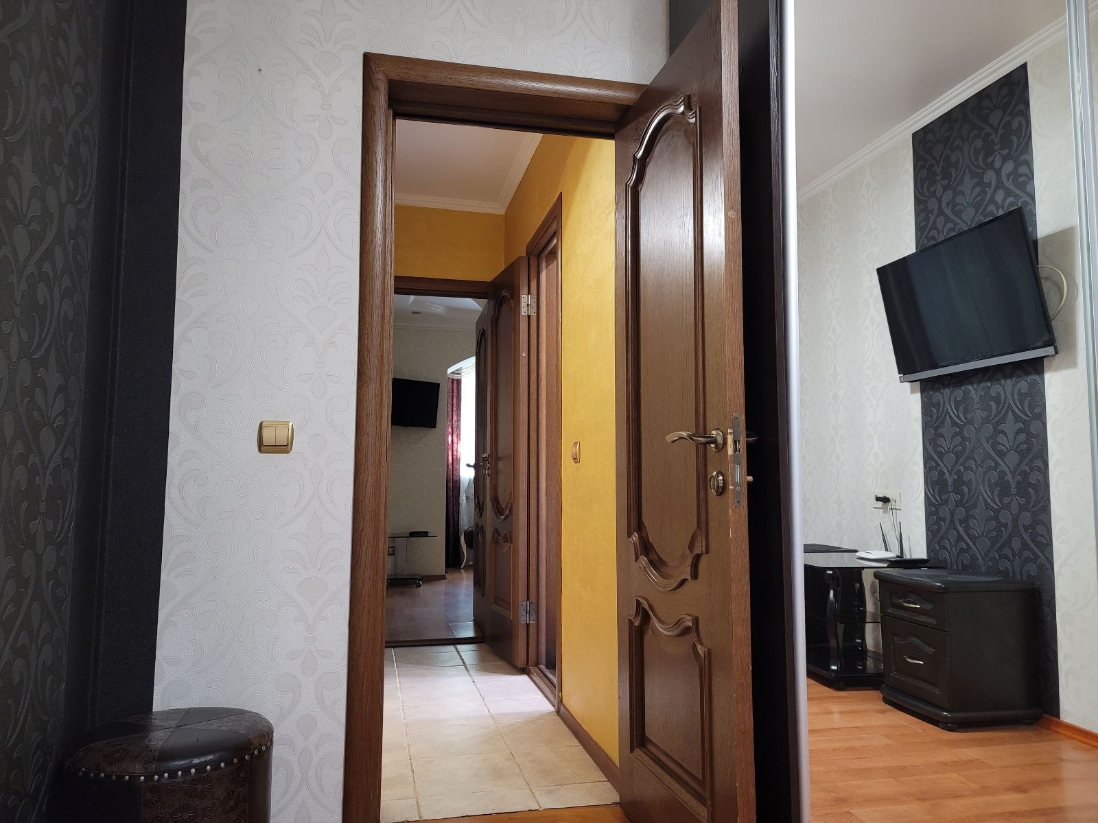 Квартира расположена в Центре города, до моря 5 минут пешком, рядом автобусные остановки и остановки для такси, и кинотеатр "Нептун", многочисленные магазины, бары,рестораны, до развлекательного комплекса "Metropolis" 5 минут пешком. на территории дома артезианка, единственная, в г. Ильичевске.
