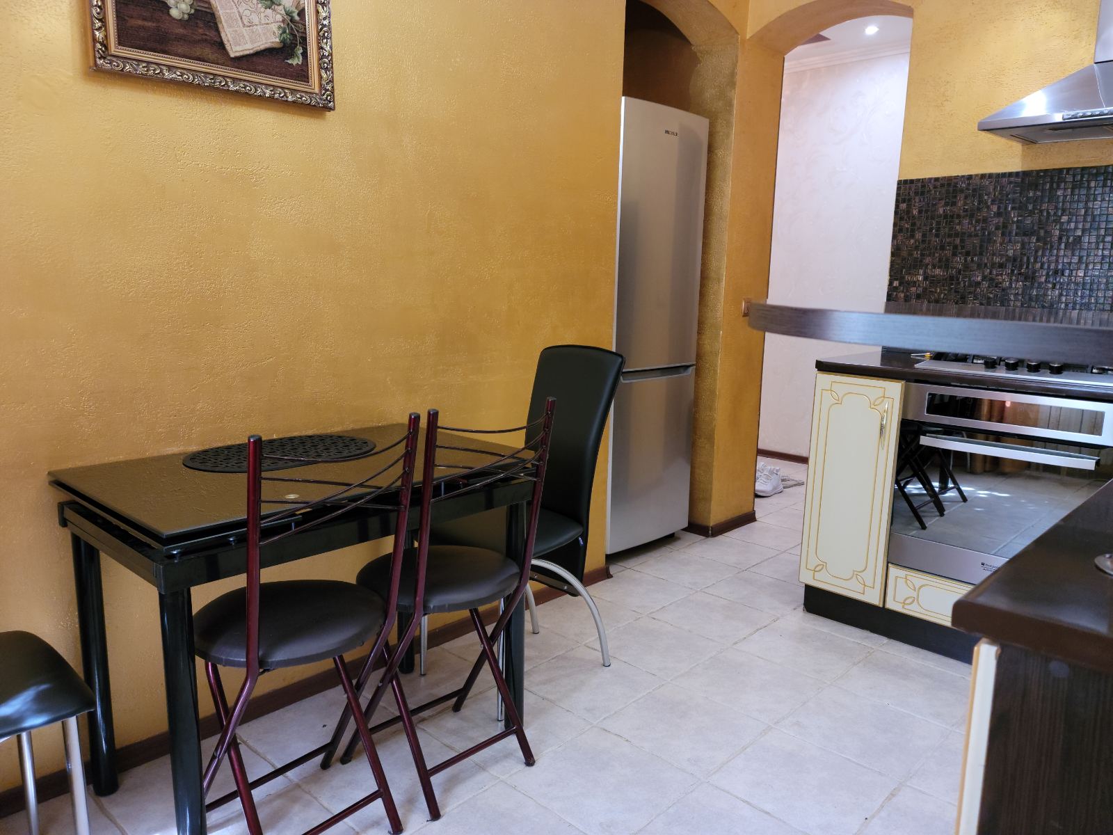 3 плазменных телевизора, кабельное TV, газовая плита, духовка, вытяжка, холодильник,
